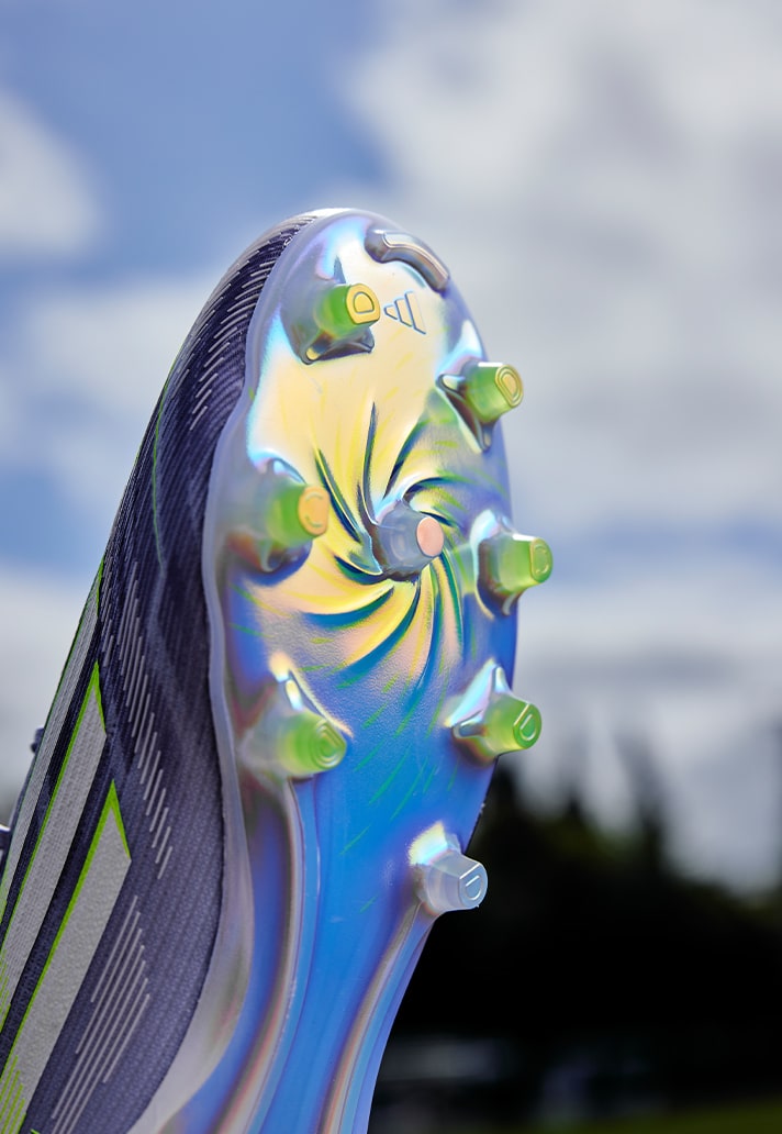 Không chỉ mạnh về hiệu suất, F50 Sparkfusion còn gây ấn tượng với diện mạo bắt mắt với sắc tím pastel kết hợp cùng xanh neon rực rỡ. Phần gót giày nổi bật với logo Sparkfusion riêng biệt, và đế giày mạ crôm có họa tiết lốc xoáy quanh đinh Pivot – một điểm nhấn thiết kế đặc trưng của dòng F50 mới.